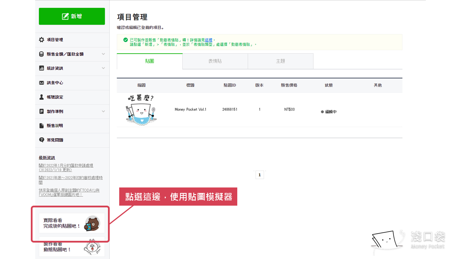 ❋ 貼圖通過審核後,在「項目管理」頁面按上架就會正式販售囉!