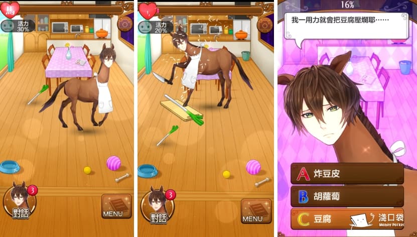 還有像回答問題也可以考慮一點馬的特性進行合理(?) 回答 (微妙到很好笑🤪) 像這題他問我味噌湯要加甚麼,結果我選豆腐居然GG.....